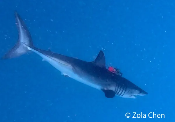 Figure 1. A shortfin mako shark equipped with a data logger. © Zola Chen