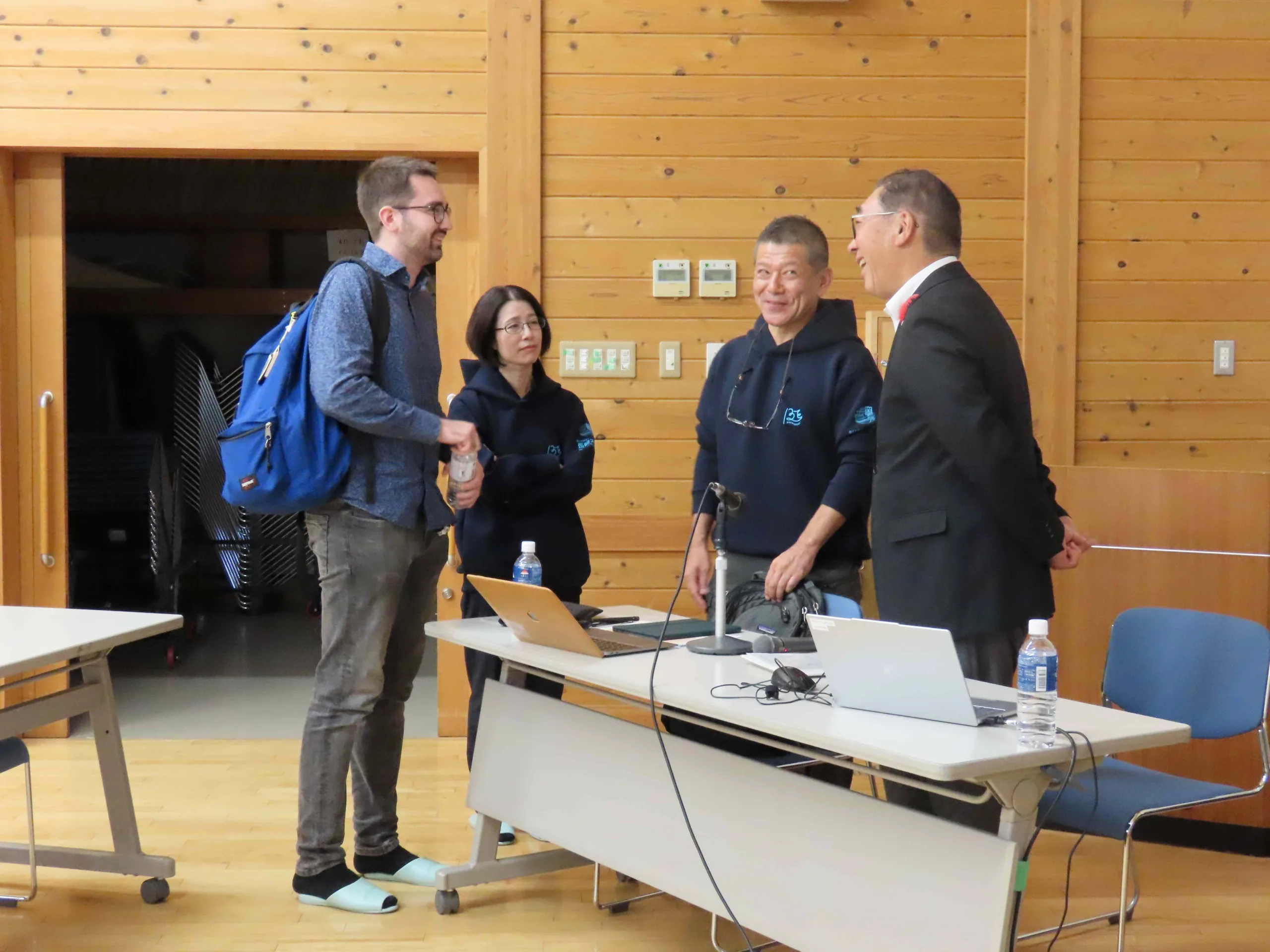 From left: Mr. Van Dreumel, Assoc. Prof. Orita, Assistant Prof. Takahashi, and Kawauchi Village Mayor Endo