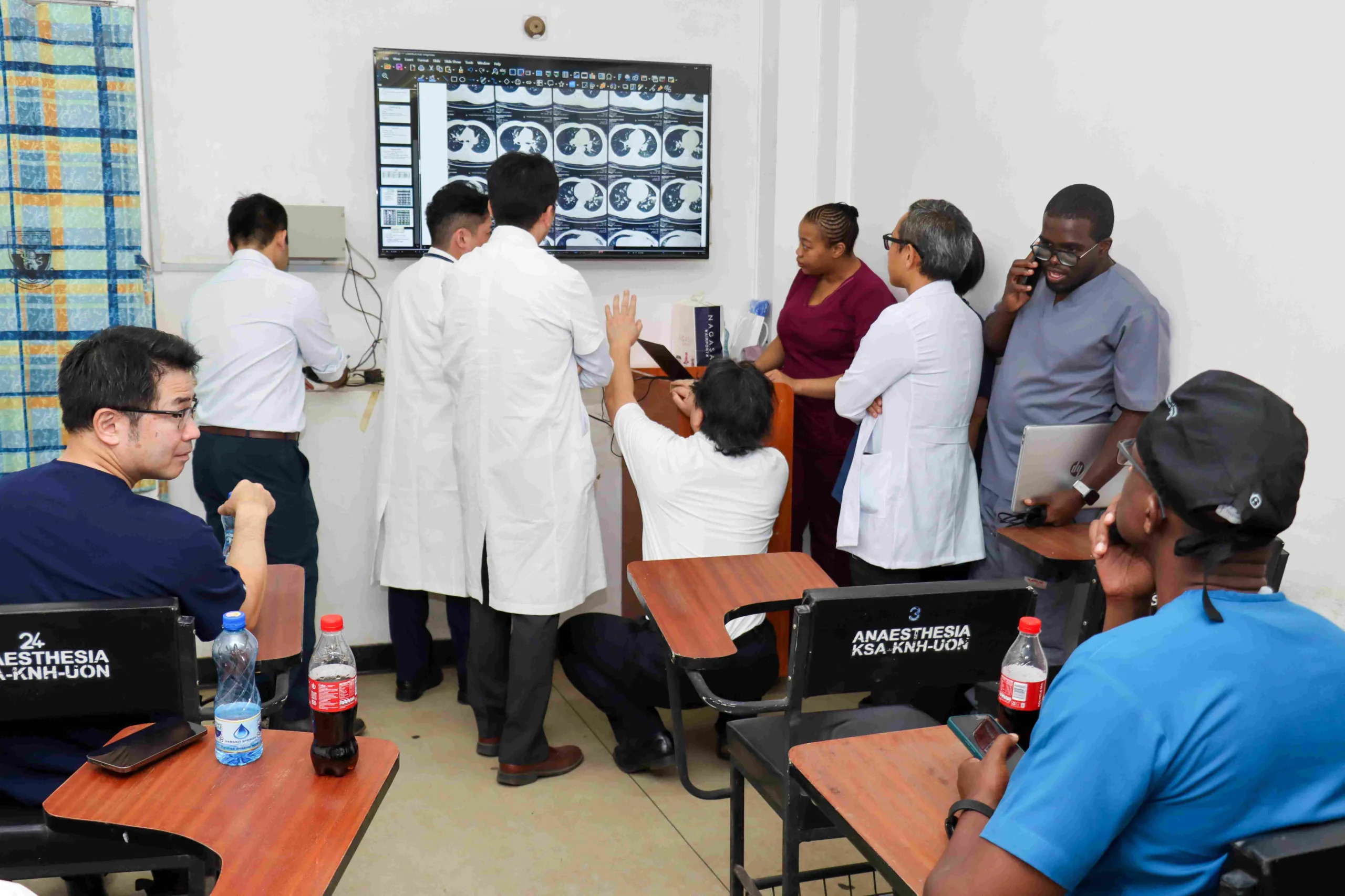 This training was part of the “Projects for Global Growth of Medical Technologies” commissioned to Nagasaki University by the Japan Institute for Health Security. Five physicians, one nurse, and two clinical engineers from Nagasaki University Hospital participated as instructors, providing intensive training to Kenyan healthcare professionals.
