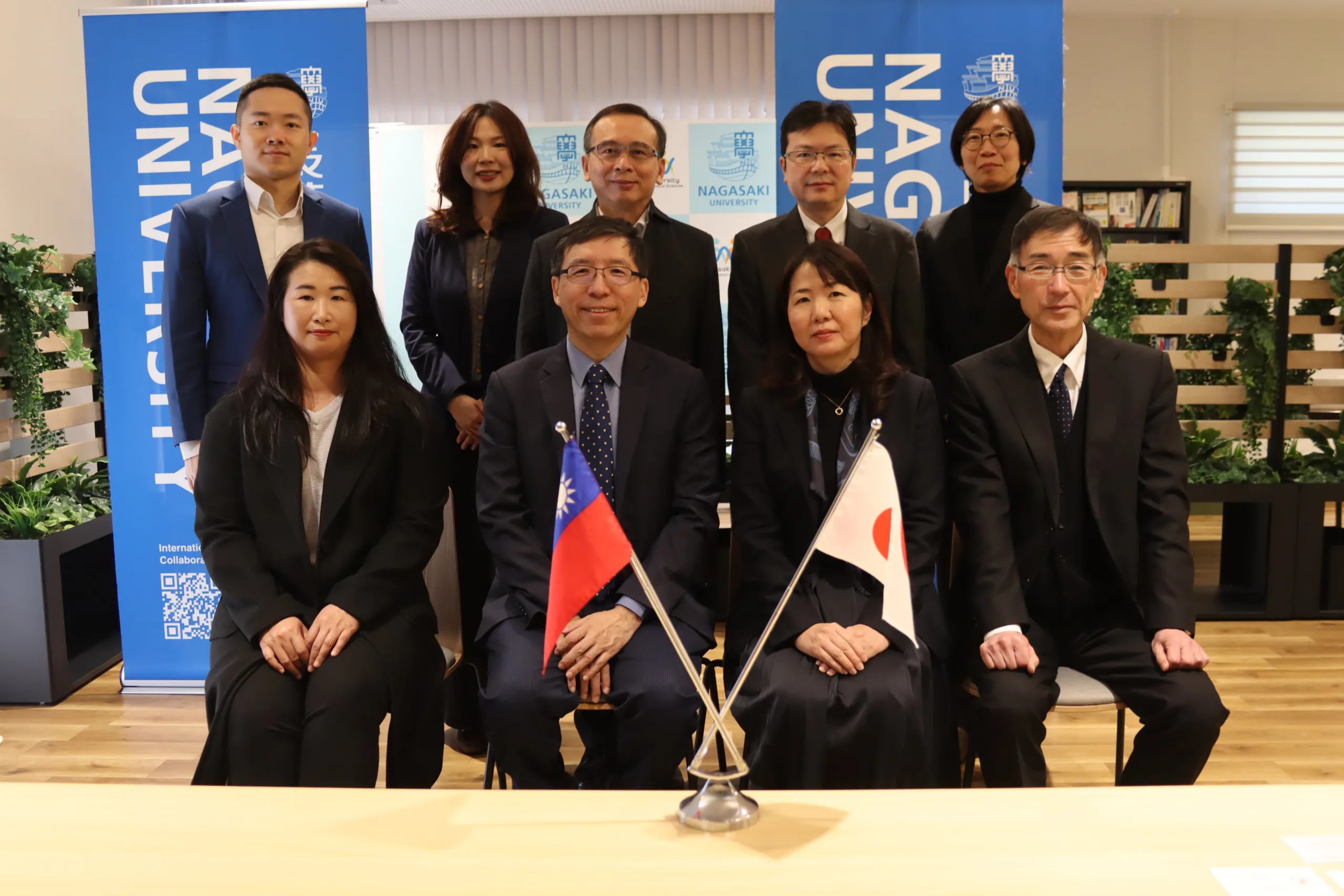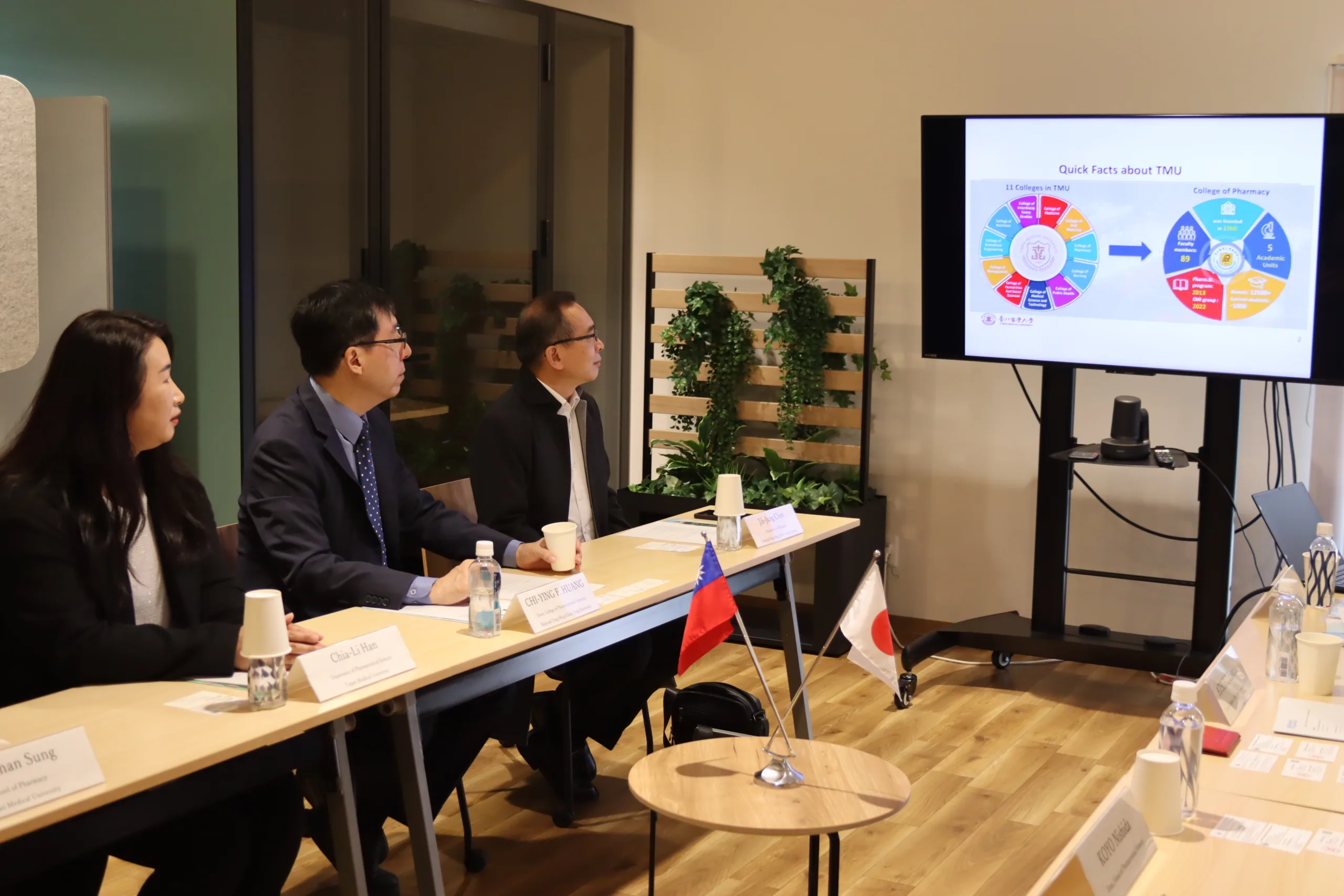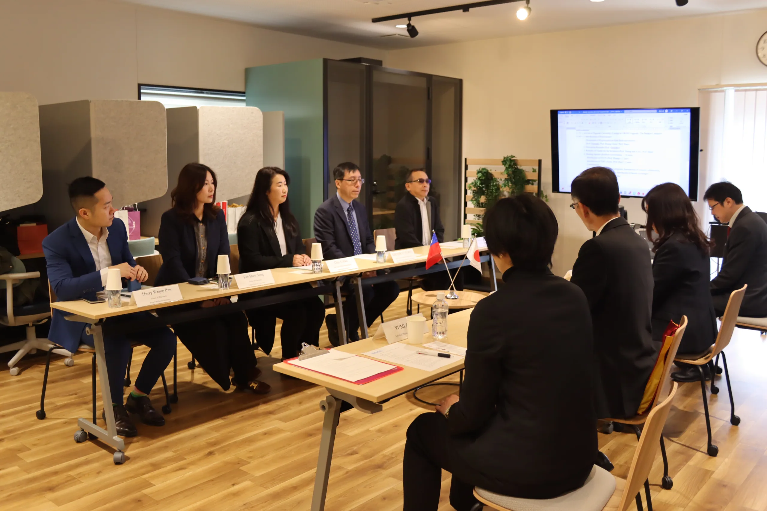 During the visit, Dean Chi-Ying Huang of NYCU’s College of Pharmaceutical Sciences and Associate Professor Chia-Li Han of TMU’s Department of Pharmaceutical Sciences delivered presentations introducing their respective colleges and discussing possibilities for future collaborative research. From Nagasaki University, Dean Nishida of the School of Pharmaceutical Sciences, Professor Toriba (International Exchange), and Associate Professor Abiko were in attendance. In addition, Professor Jih-Jung Chen from the NYCU School of Pharmacy, as well as Assistant Professors Pei-Shan Sung and Harry Weijie Pan from the TMU School of Pharmacy, were also in attendance. All parties confirmed their intention to further strengthen academic and research collaboration.