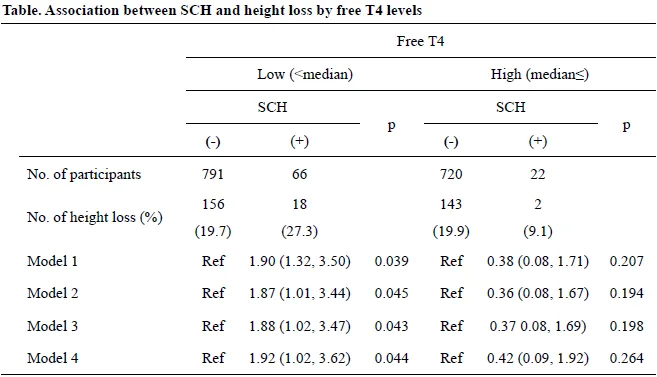 Subclinical hypothyroidism and height loss according to free thyroxine levels: A prospective study